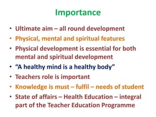 Educating patients about the importance of health promotion helps patients realize the importance of health promotion and motivate them to start promoting their health. Describe the importance of a focus on health promotion. Health education programs help empower individuals and communities to live healthier lives by improving their physical mental emotional and social health by increasing their knowledge and influencing their attitudes about caring for their well-being.